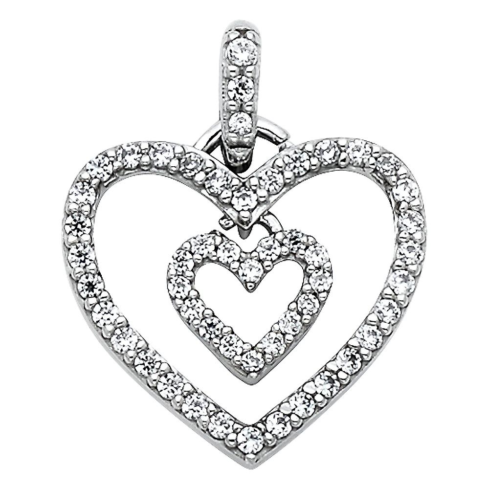 14k White Gold Cubic Zirconia Love Heart Pendant Necklace 15x15mm-Pendant for Women - 1.2 Grams