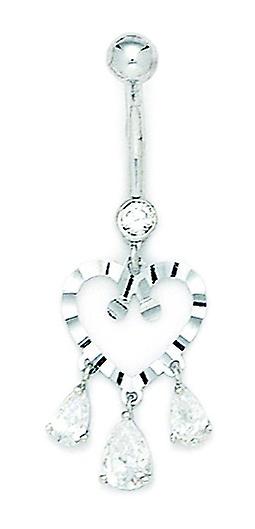 14k White Gold Cubic Zirconia 14 Gauge Dangling Love Heart Pear Shapes Belly Ring 39x15mm Body Piercing-Ring for Women