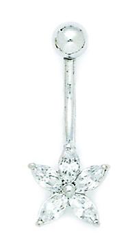 14k White Gold Cubic Zirconia 14 Gauge Dangling Star Body Jewelry Belly Ring 26x10mm-Body Piercing-Ring for Women