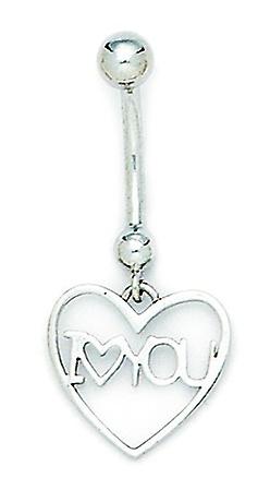 14k White Gold Cubic Zirconia 14 Gauge Dangling Love Heart Body Jewelry Belly Ring 33x15mm-Body Piercing-Ring for Women