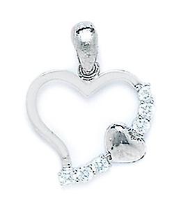 14k White Gold Cubic Zirconia 2 Love Hearts Pendant Necklace 21x16mm-Pendant for Women
