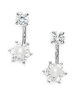 14k White Gold Center Cubic Zirconia Full Flower Telephone Earrings 14x7mm Stud Earring for Women