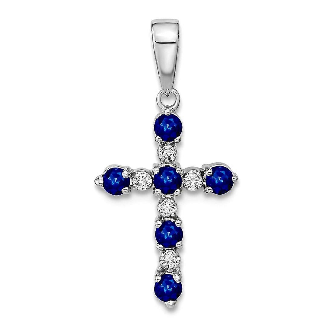 14k White Gold Lab Created Sapphire and Diamond Religious Faith Cross Pendant Necklace-Pendant for Women