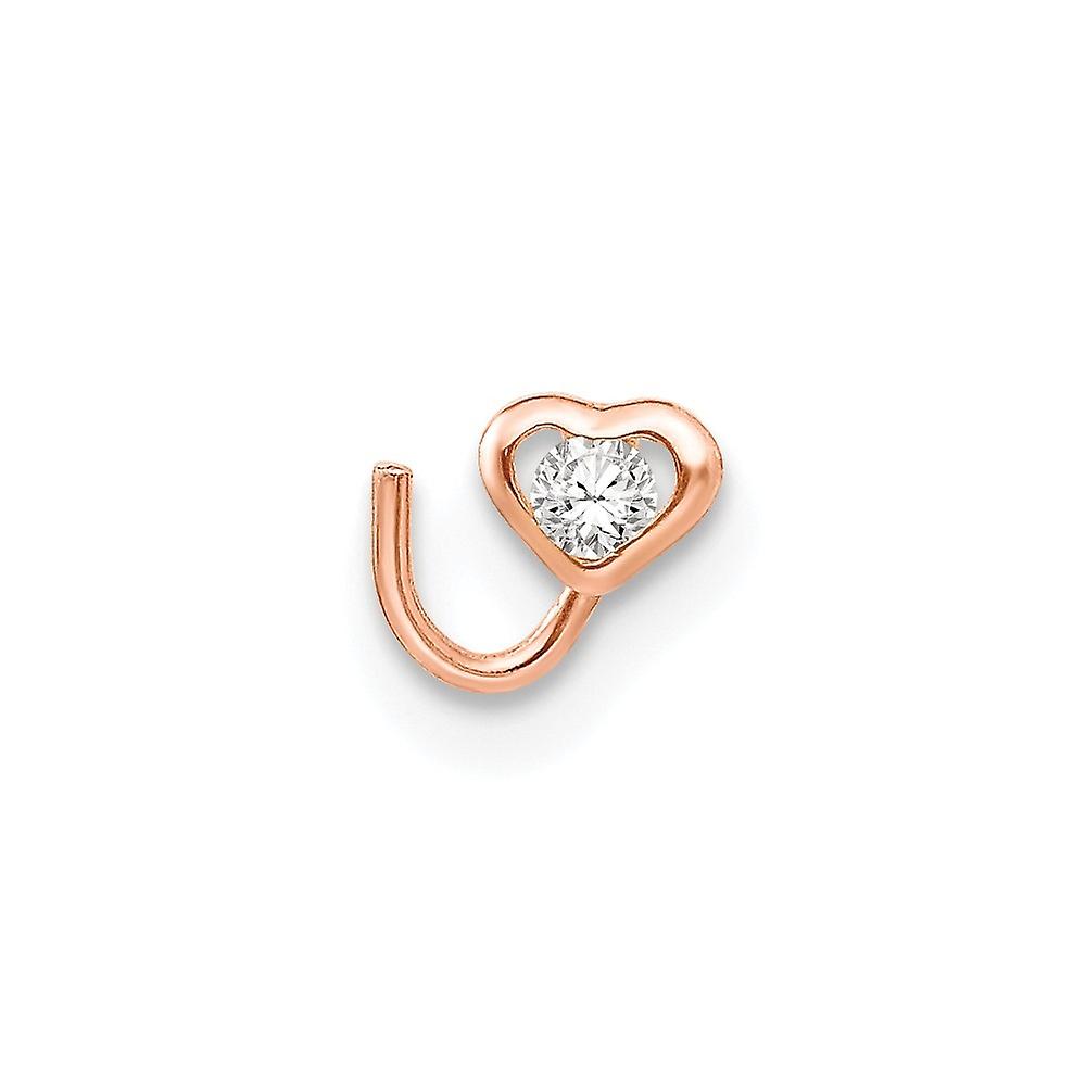 14k Rose Gold Cubic Zirconia Love Heart Pendant Necklace Nose Post-Pendant for Women