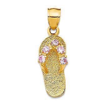 14k Solid Gold Birth Month Cubic Zirconia Flip Flop Pendant Necklace-Pendant for Women