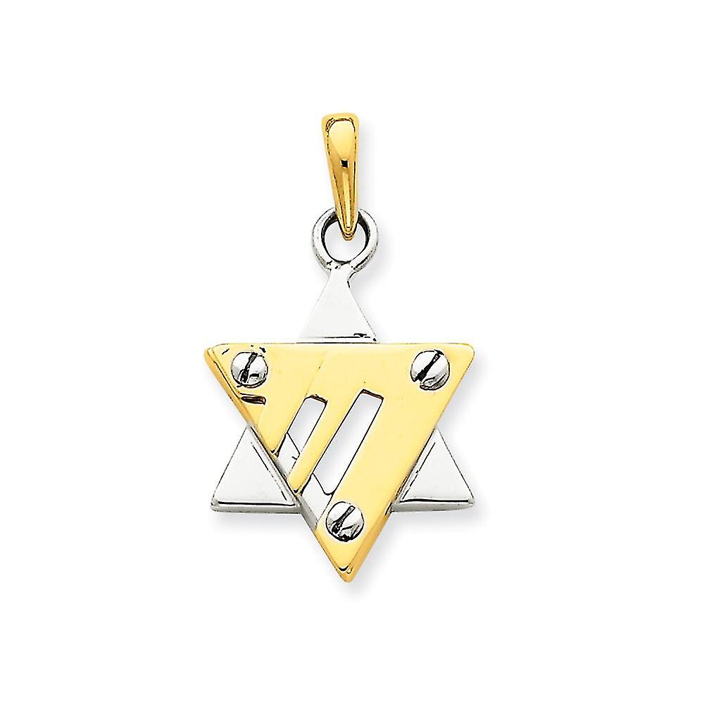 14k Two Tone Solid Polished Not engraveable Gold Religious Judaica Star of David Pendant Necklace 20x17mm-Pendant for Wo