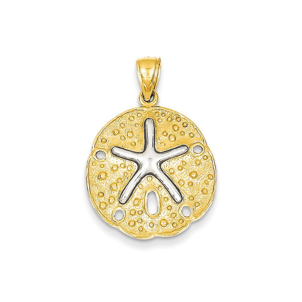 14k Two Tone Textured Polished Gold Sand Dollar With Sea shell Nautical Starfish Pendant Necklace 28x20mm Wide-Pendant f