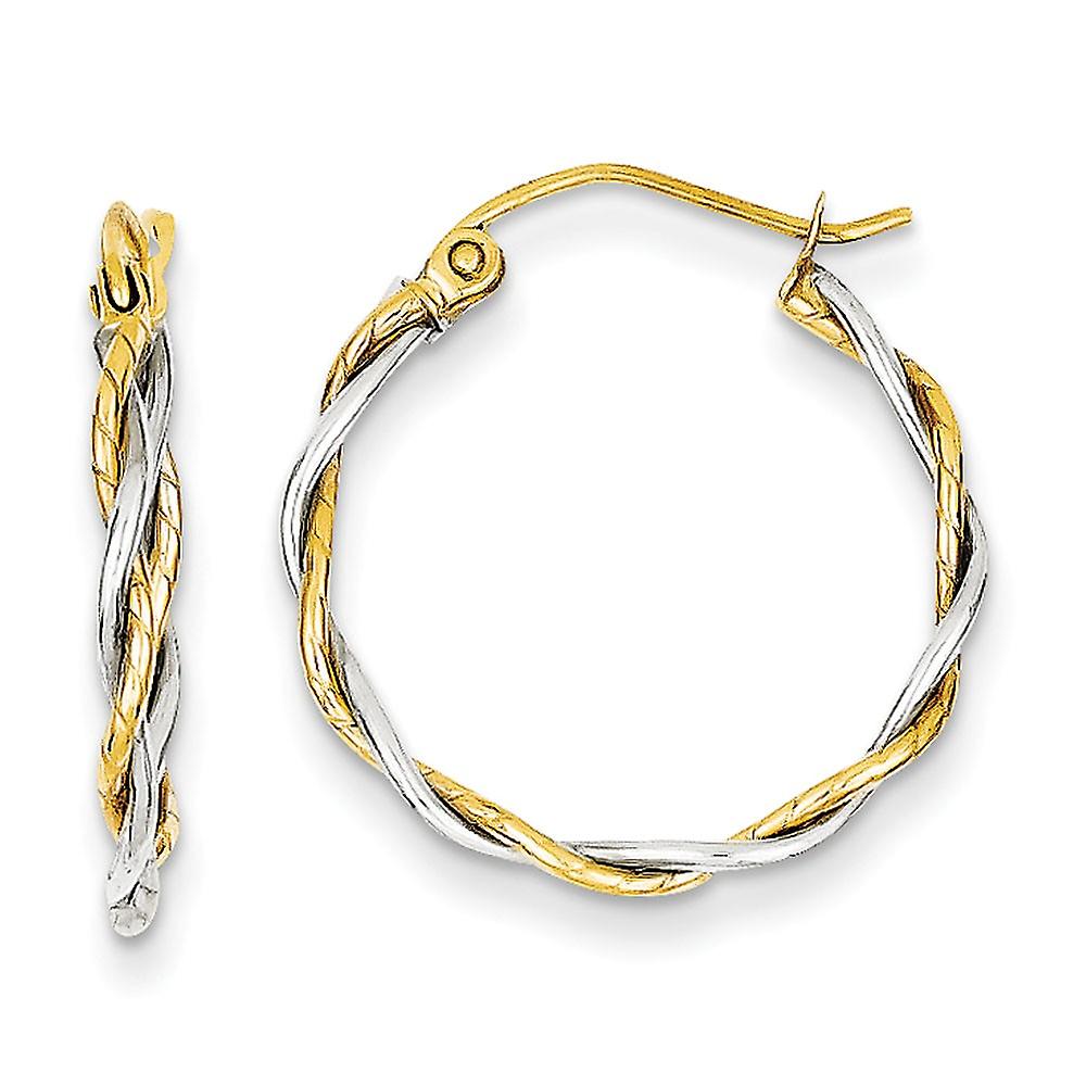 14k Two Tone Hollow Hinged post Gold Polished 2mm Twisted Hoop Earrings 19x19mm-Hoop Earring for Women