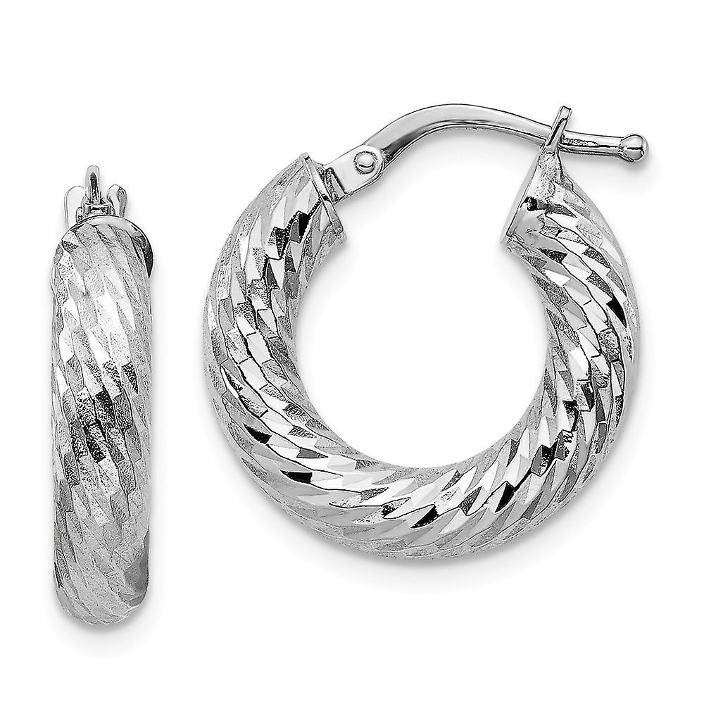 14k 4x10 White Gold Sparkle Cut Round Hoop Earrings 19x17.8mm Wide 4mm Thick-Hoop Earring for Women