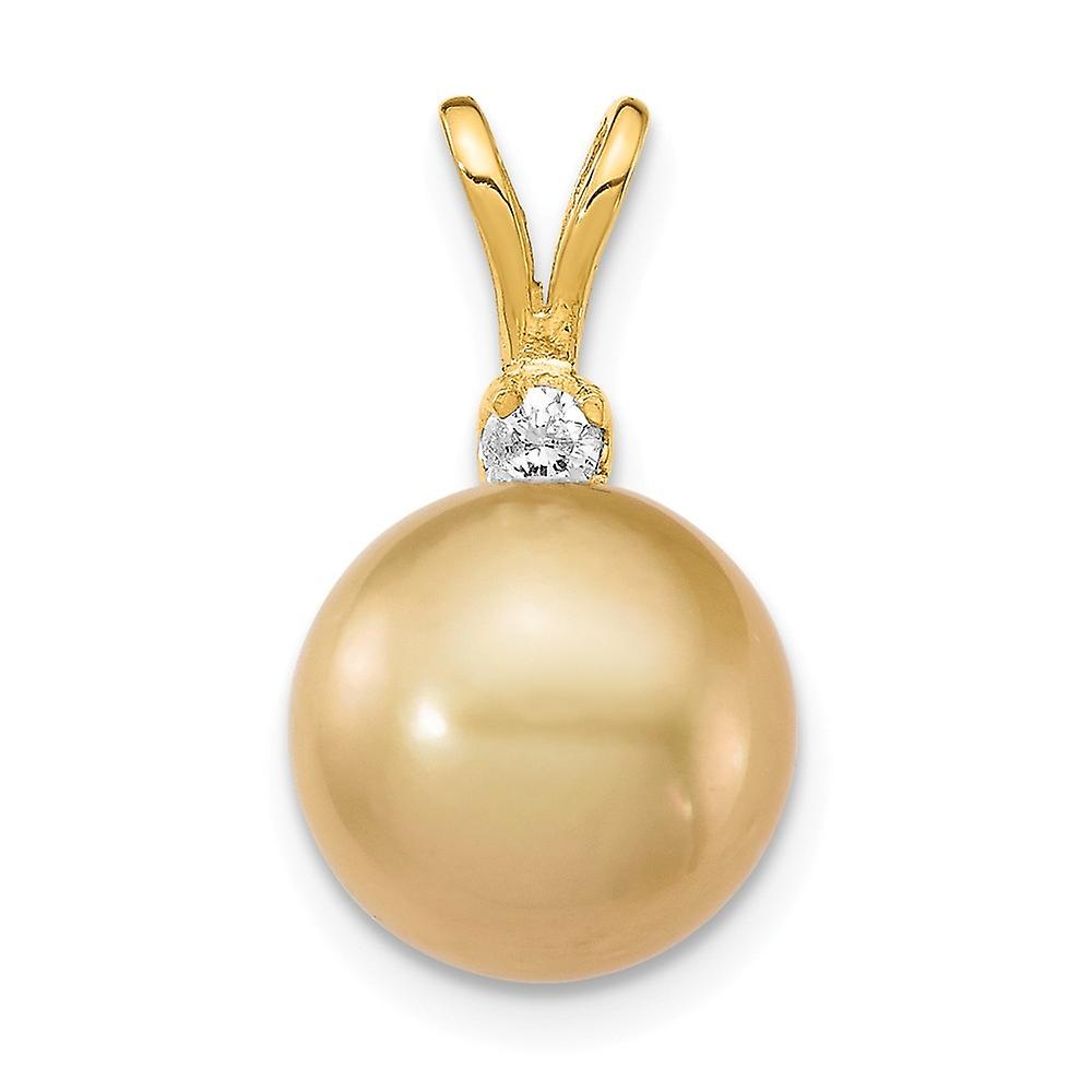 14k 9 10mm Golden Saltwater Cultured South Sea Pearl .05ct Diamond Pendant Necklace-Pendant for Women