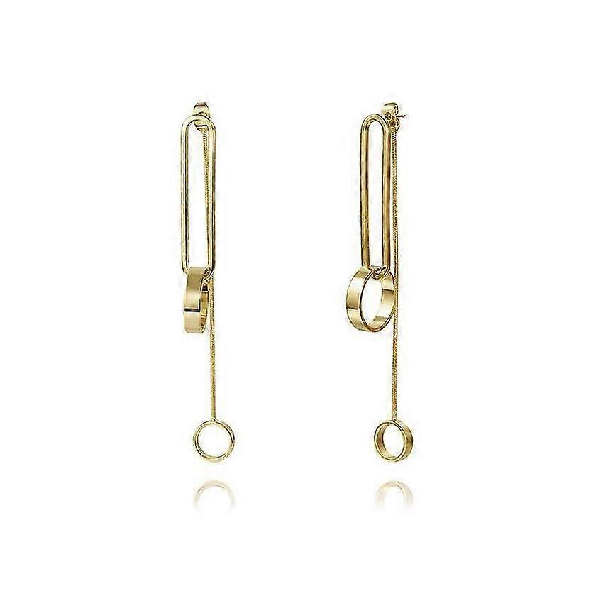 14K Gold Plated Long Drop Dangle Earrings Chain Threader Open Circle Geometric for Women