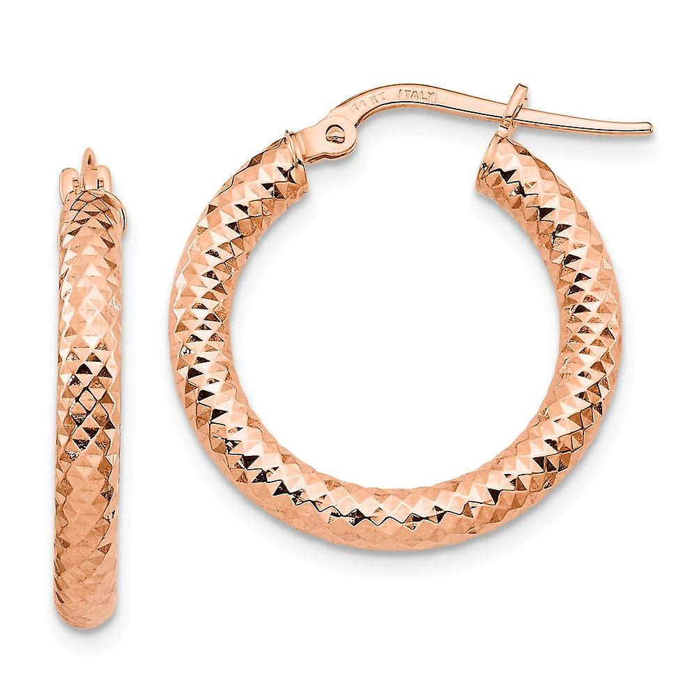 14k 3x15 Rose Gold Sparkle Cut Round Hoop Earrings 22.92x21.5mm Wide 3mm Thick-Hoop Earring for Women