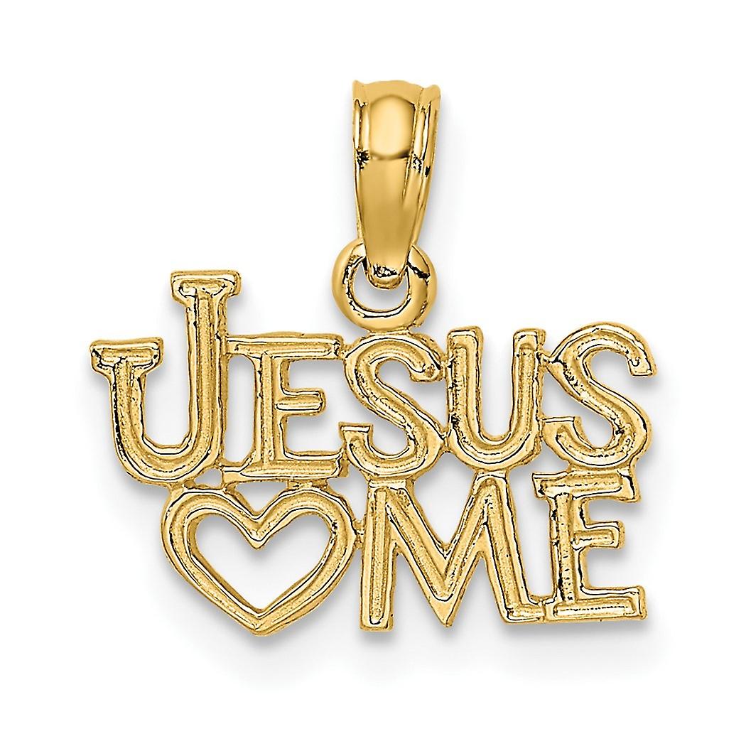 14mm 10k Solid Yellow Gold Polished Engraved Religious Faith Inspiration Jesus Love Heart Me Charm Pendant Necklace for