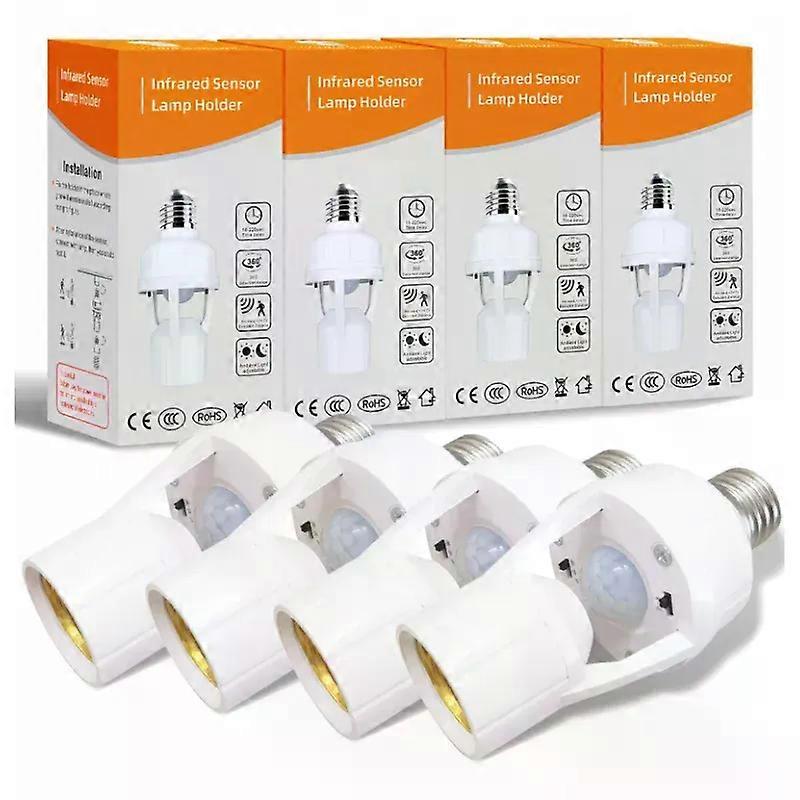 1/4Pack 360 Degree Infrared Motion Sensor E27 Socket Lamp Holder With Sensor Adjustable Induction Light Delay Switch