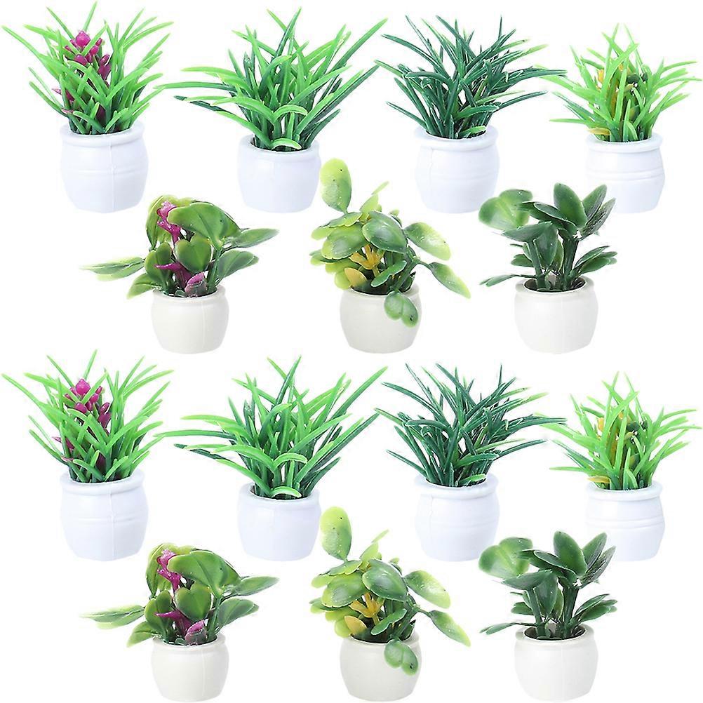 14pcs Simulated Bonsai Model DIY Microlandscape Accessory Mini Flowerpot Figurine