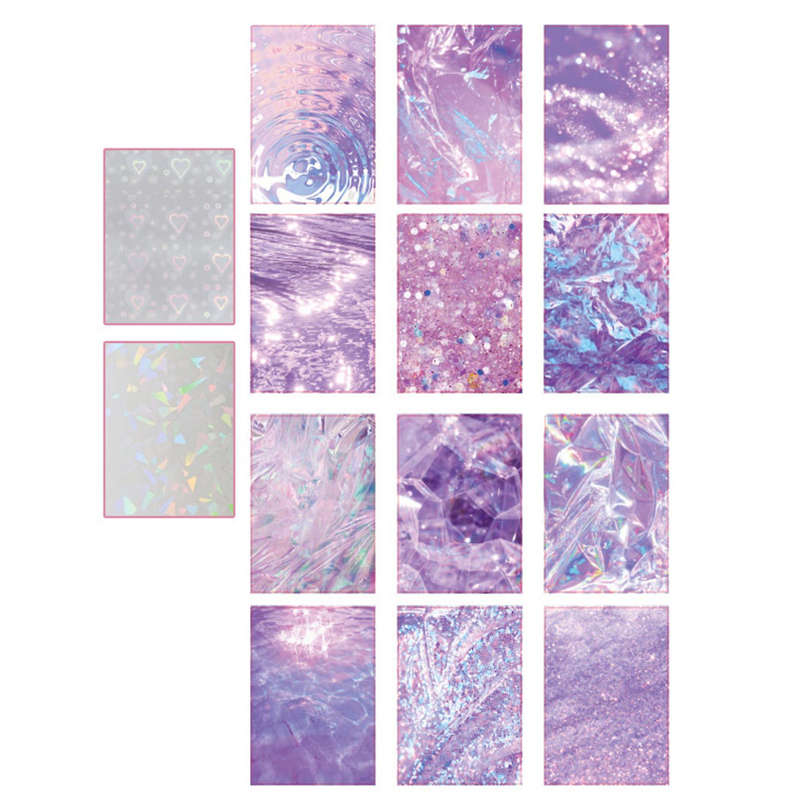 14PCS Foil Holographic Sticker Aesthetic Easy Apply PET Long Lasting Scrapbook Sticker for Album Water Bottle Gifts Purple