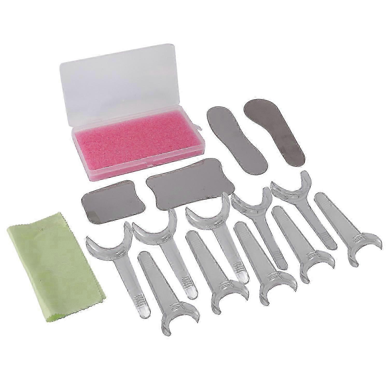 14Pcs Dental Intraoral Mirror Set Reflector with 10Pcs Mouth Opener Cheek Lip Retractor Dental Clinic Oral Care Tool