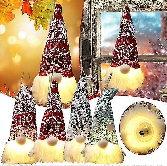 1/4pcs Christmas Decorations With Led Light Handmade Plush Scandinavian Swedish Tomte Nisse Santa Elf Dolls Lighting Hanging Christmas Tree Ornaments