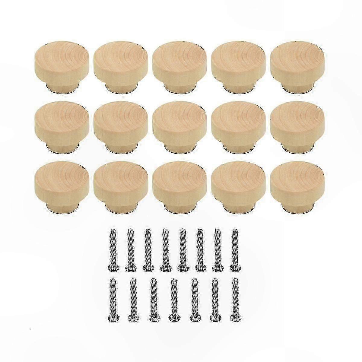 15 Pack Wooden Cabinet Knobs, Round Drawer Pulls for Furniture, Cupboard Handles