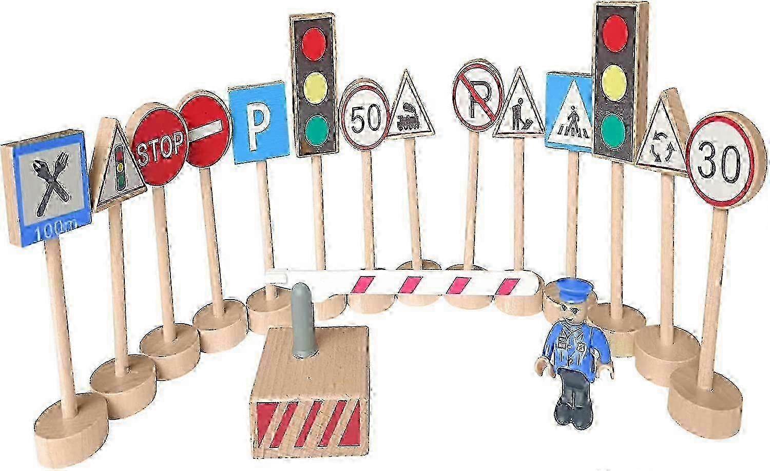 15 Pieces Wooden Street Sign Playset, Traffic Sign Lights Kids Playset