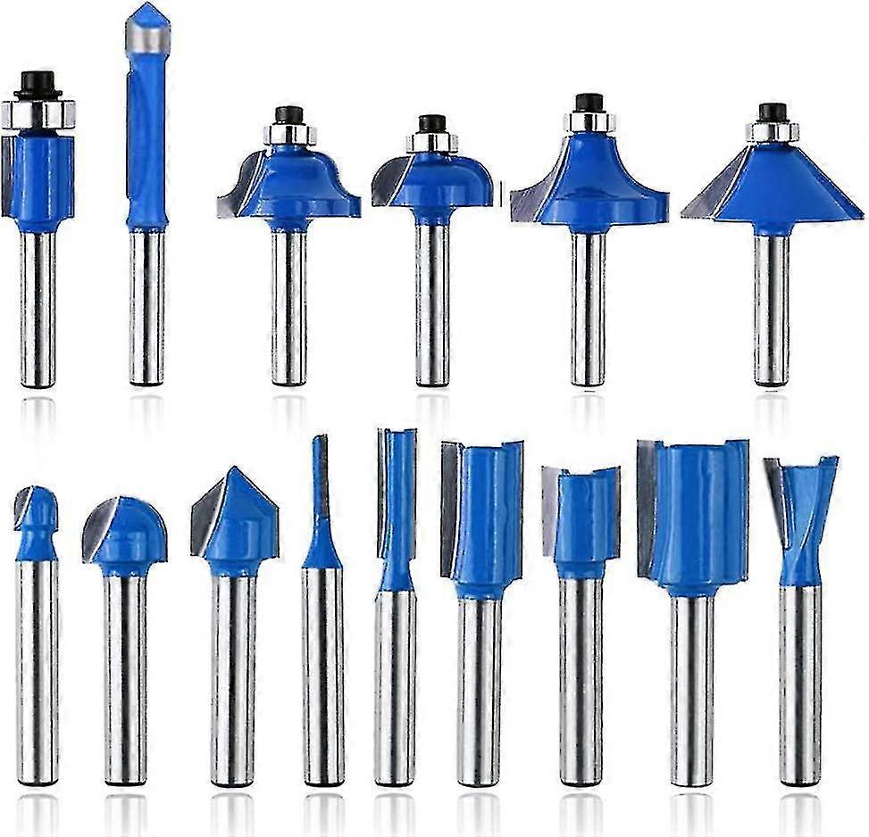 15 Pieces Router Bits, 1/4"(6.35mm) Shank Tungsten Carbide Corner Tool, Spline Drill Bit Tongue For Chipboard, Wood Milling Cutter, Router Bit, Chamfe