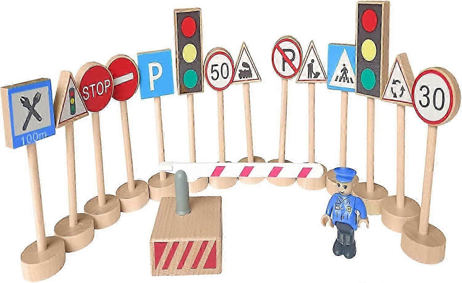 15 Pieces Wooden Street Sign Playset, Traffic Sign Lights Kids Playset