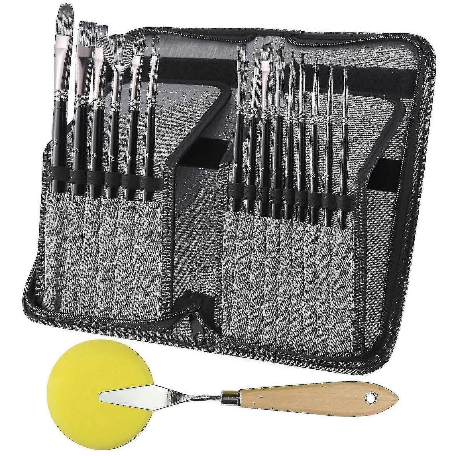 15 Pieces Oil Painting Acrylic Gouache Watercolor Brush Set With Pop-up Carrying Case With Palette Knife And 2 Sponges - Black