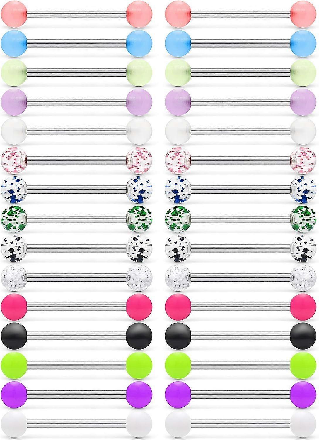 15 Pairs 16G 14G Stainless Steel Tongue Barbell Ring Nippleings Nipple Rings