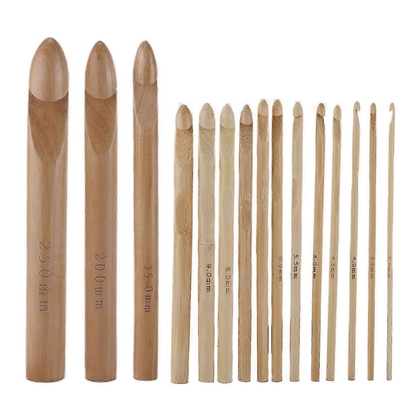 15Pcs Crochet Hooks Large Ergonomic Handle Bamboo Crochet 15mm/20mm/25mm Extra Thick Needles for Arthritic Hands