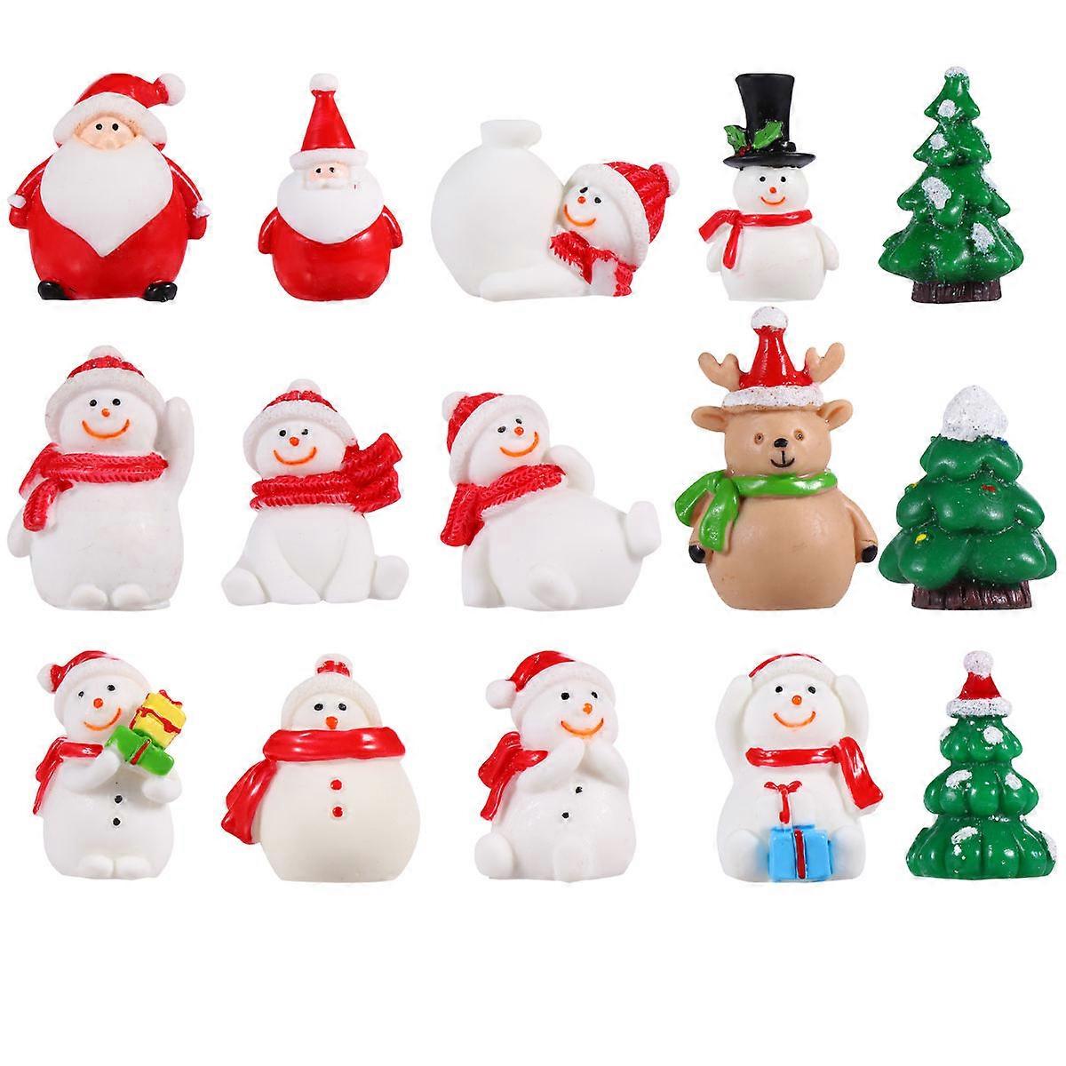 15pcs Christmas Resin Ornaments Festive Desktop Micro Landscape Decor with Moss & Succulent Craft Figurines for Party Gifts