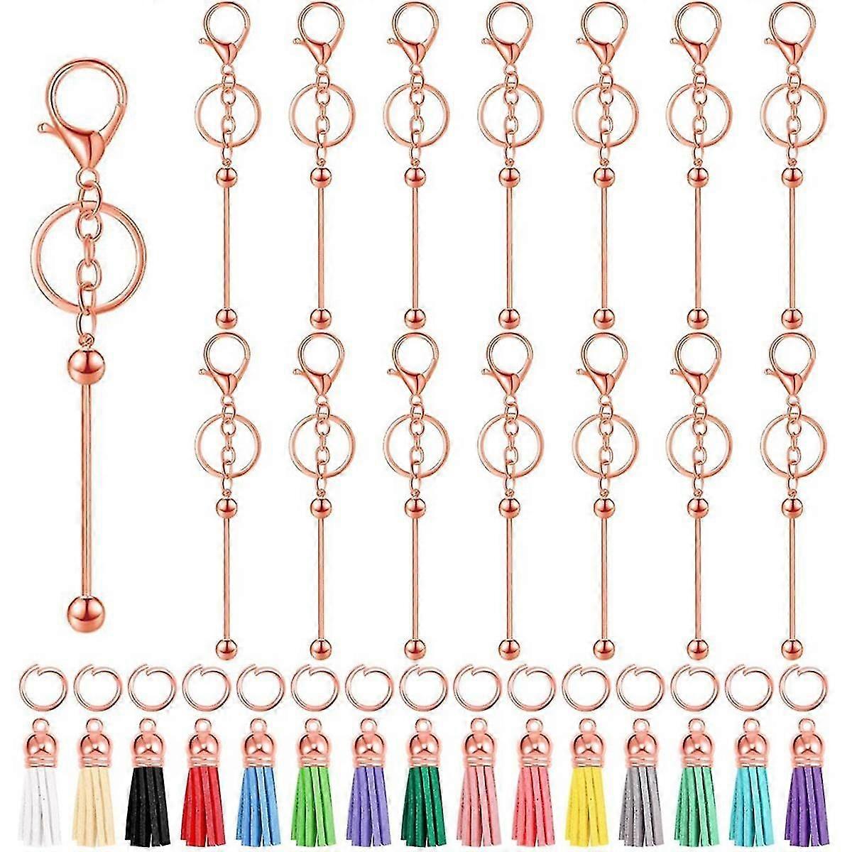 15 Pcs Beadable Keychain Bar Metal Blank Keychain with 15 Pcs Leather for DIY Bead Keychain Supplie