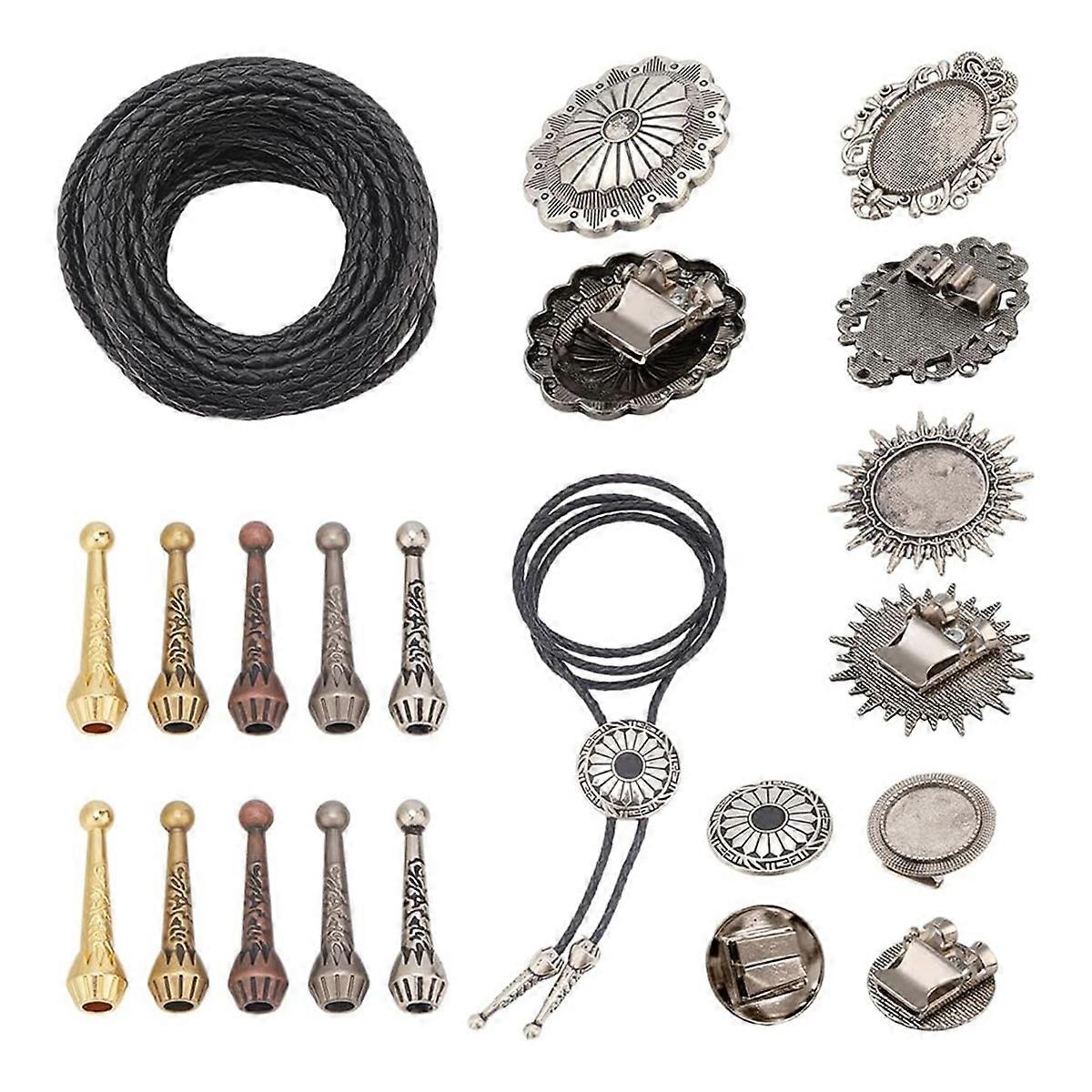 15Pcs Bolo Tie Findings Kit, Bolo Tie Tips Replacement Kit Bolo Tie Buckle Leather Necktie Cord for Bolo Tie Making