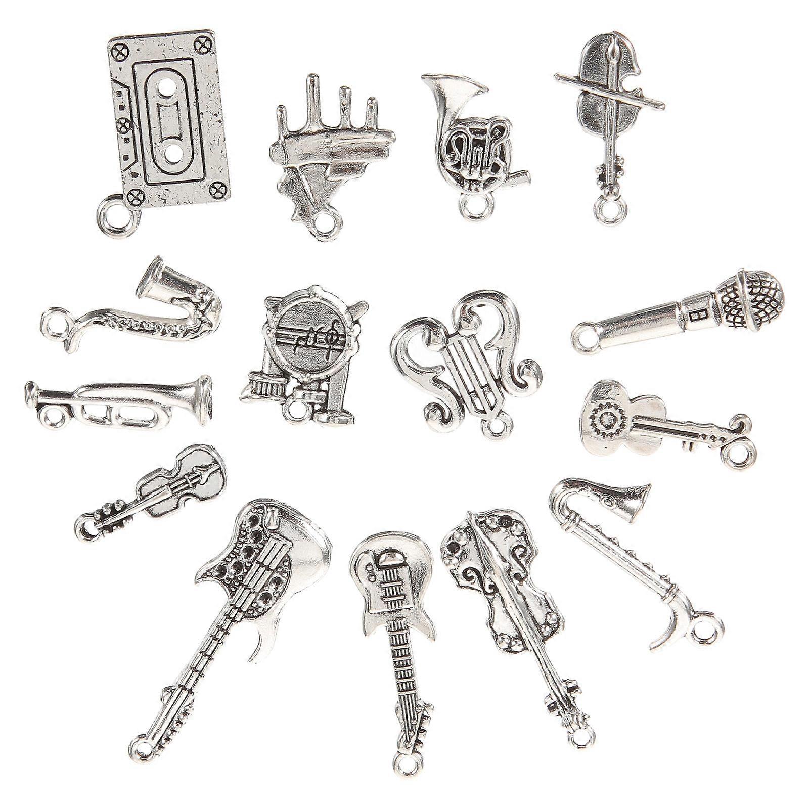 15pcs Mixed Style Musical Instrument Charms for Jewelry Making DIY Handcraft Supply for Necklaces & Bracelets Creative Music Theme Accessories