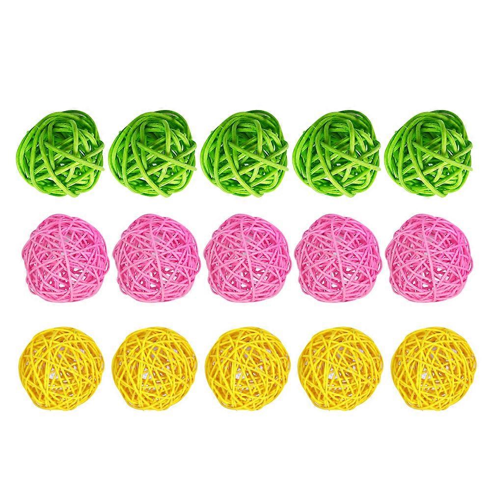 15pcs Wicker Rattan Decorative Balls for DIY Crafting, Hanging Vine Ornaments, Assorted Yellow, Light Green & Pink, Ideal for Homes, Kindergartens,