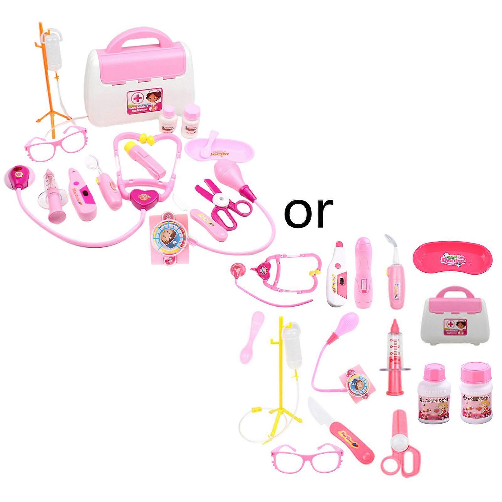 15Pcs Electric Medical Kit Simulation First-Aid for Case for Children’s Role for Play Doctor Pretend for Play Realistic Pink