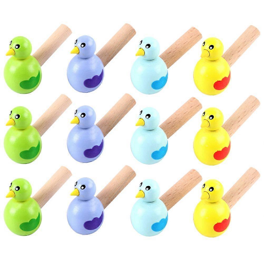 15pcs Wooden Bird Whistles Cartoon Whistle Bird Shape Toy Kids Whistle Educational for Children Gift ( Random Color)