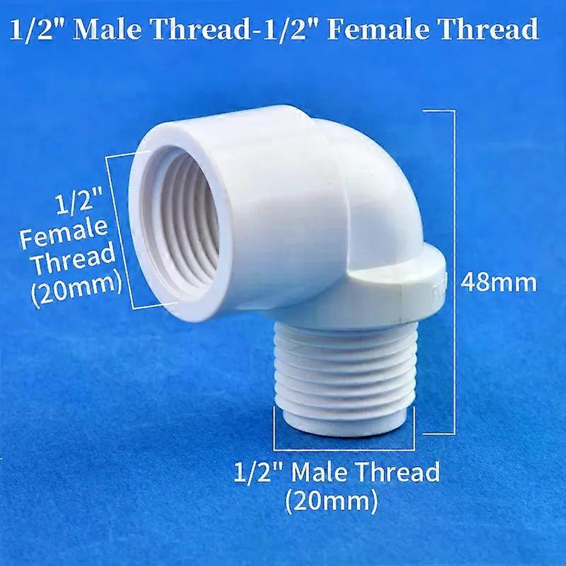 1/5Pcs 1/2" 3/4" 1" White PVC Female-Male Thread 90 Elbow Connector Garden Irrigation Adapter Aquarium Fish Tank Accessories Welcome to contact us for large quantity order! We will give you a good price if you need large quantity. Specification: Color:White Material:PVCEnvironmental protection material, safe and non-toxic Application:PVC Female-Male Thread 90 Degrees Elbow Connectors are suited to many applications. They are probably the most widely used plastic pipe systems in industrial pressure applications and are found in the water treatment, marine aquarium, swimming pool, ponds, aquaculture, irrigation, cooling, heating, chemical and process industries to name. Note: The size is measured by hands, please allow minor error of measurement. Photo color might be a little different from the actual product due to color display of different monitors Products Show: Thanks for scrolling to the end! If you like this item,please add it to your "Wish List" If you like our store,please add it to your "Store List" If you like it, you can place the order directly. We will ship them to you as soon as we can. We wish you get the goods soonest. After you get the goods, and you have some doubts or questions, please message us immediately, we will help you solve the problem.We treat every valuable customer sincerely. And we wish to have your order in future. _x000D_