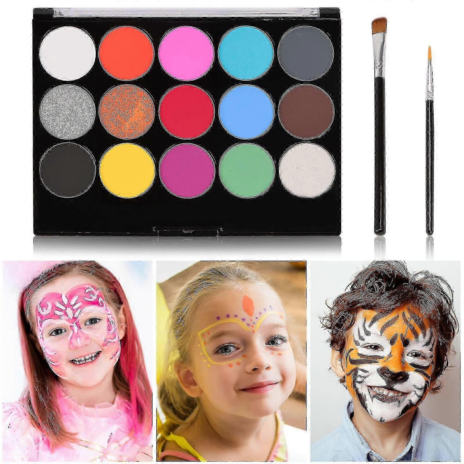 15-Color Body & Face Paint Kit, Washable, 2 Brushes, Professional Palette