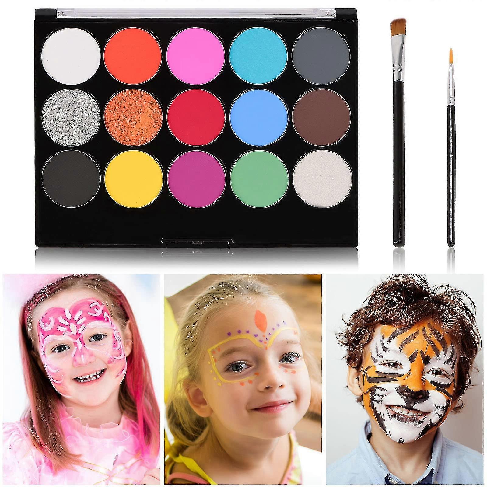 15 Colors Body Painting Face Paint Kit, Professional Palette Washable With 2 Face Paint Brush, Professional Body Face