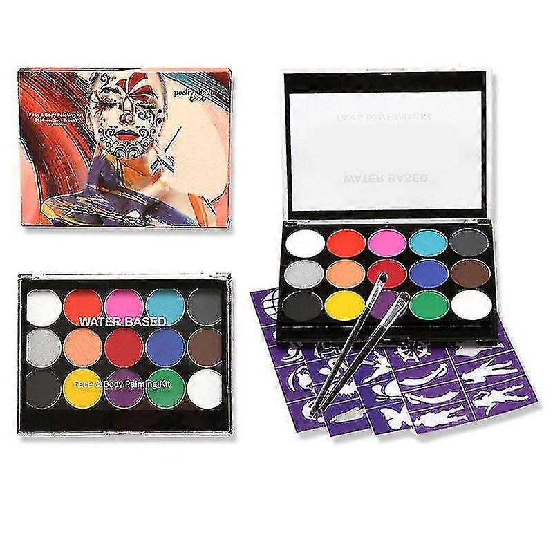15 Colours Make-up Palette 2 Pens + 4 Templates Children's Face Paint Set For Children Parties And Carnival Face Painting Kit