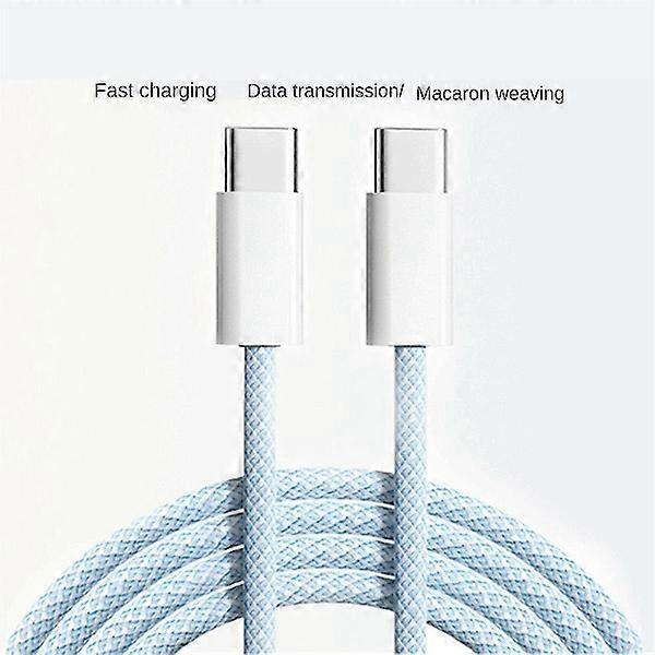For 15 Macaron Data Cable Double Type-C Fast Charging Braided Data Cable C to C 60W 100cm Charging Cable, Blue