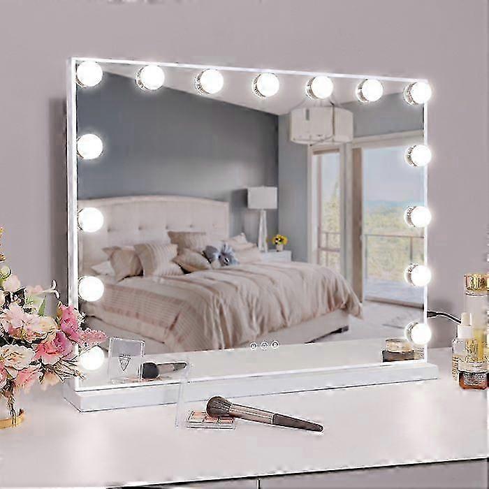 15 Led Lighted Makeup - 3 Adjustable Lights - Usb Rechargeable - - - 58 X 46 Cm (only Bulbs) Sans Bluetooth Blanc