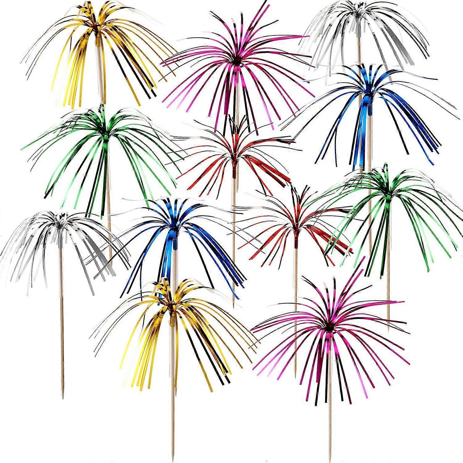 Abundant quantity: you will receive 200pieces firework cocktail picks, these toppers come in multiple colors and will really explode with color, such as green, blue, gold, silver and red, allowing you to choose according to your preferences, meeting your different decorations needs^Safe material: the fireworks party picks are made of quality foil and bamboo, safe and reliable material, strong and durable, not easy to break, harmless and odorless, can be used with confidence^Attractive design: the firework cocktail toothpicks come in bright color, very beautiful to decorate and can give a pleasant feeling, creating a happy atmosphere and making the scene more beautiful and vivid; The attractive design and color combination make these party decorations an impressive addition to your happy time, great for adding a bit of sweetness to your celebration^Appropriate size: the firework cupcake pick is approx. 7.87 inch/ 20 cm in total length, and it will be approx. 6 inch/ 15 cm when it works, suitable for most wine glasses, cupcakes, ect.^Wide range of use: these firework cocktail picks can provide decoration for most events, such as New Year Eve, birthday party, graduation party and anniversary party; It's a very nice choice of party decoration and will add happy atmosphere to your party ^
