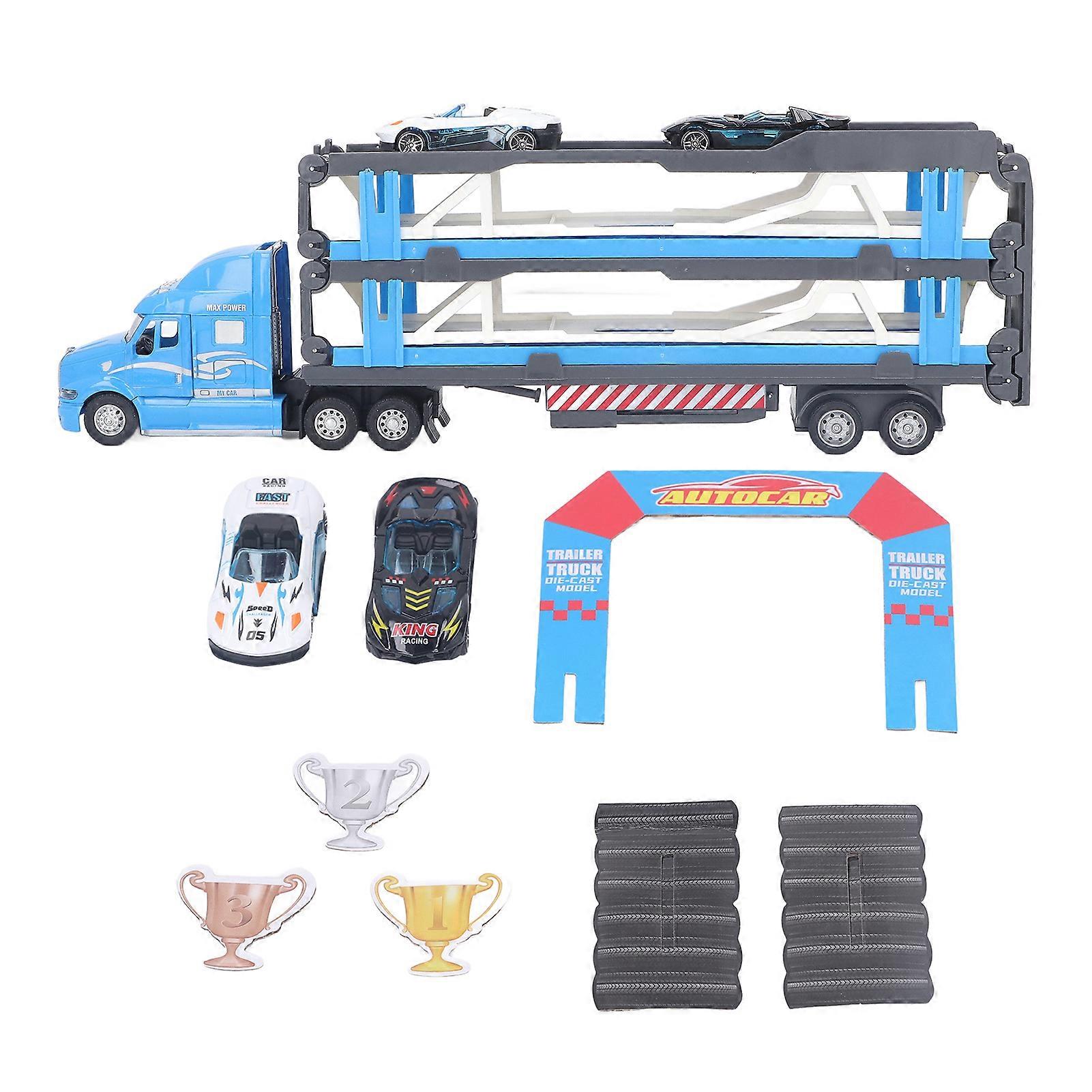 150cm Kids Carrier Truck Car Foldable High Simulation Alloy Pull Back Transport Vehicles with 2 Small Cars Blue
