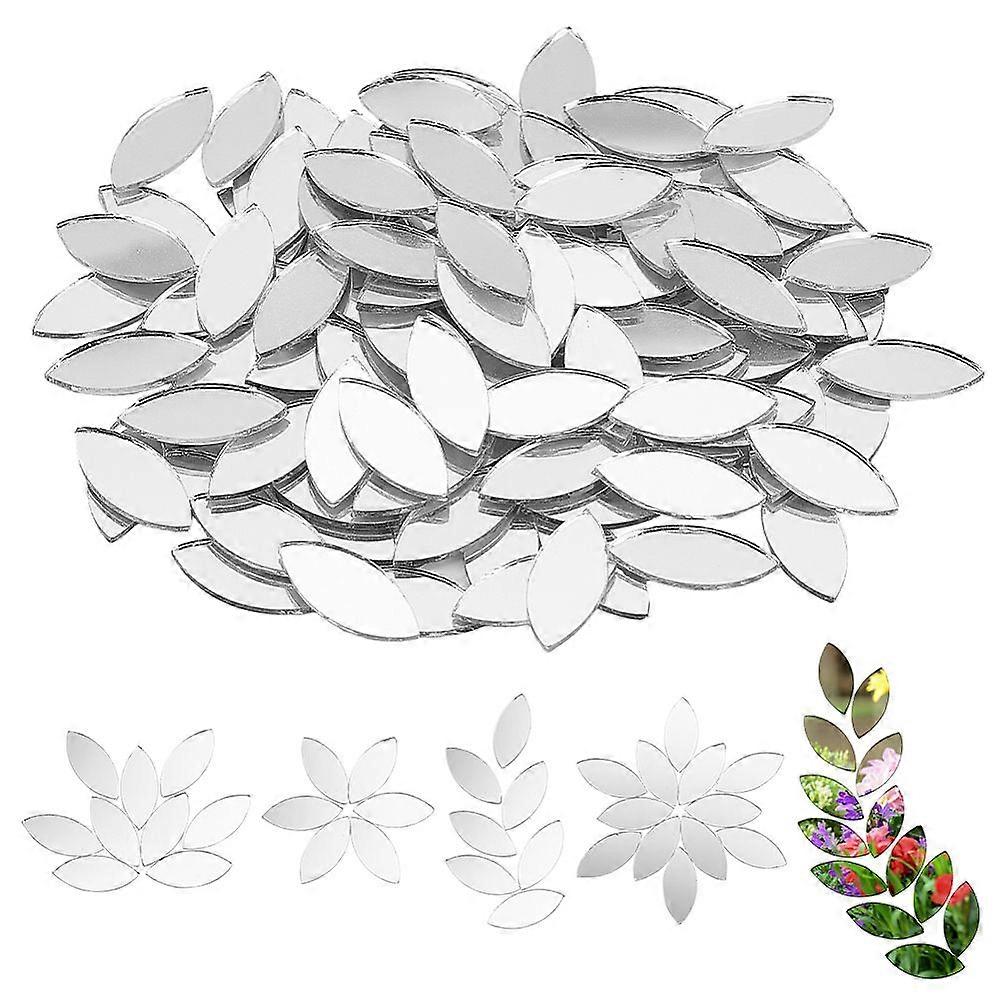 150pcs Leaf Shape Craft Mirrors Mosaic Tiles 11x25mm Petal Mosaic Tiles Mini Glass Mirror Tiles Leaf Glass Cabochons Glass Flower Leaves Tiles for DIY