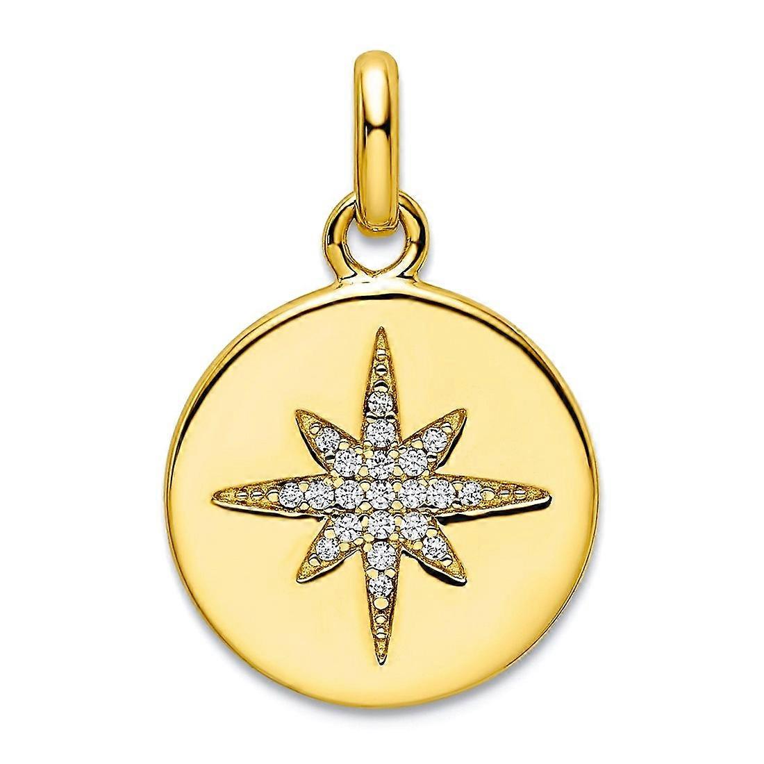 15.19mm 925 Sterling Silver Gold tone Cubic Zirconia Star Disc Pendant Necklace-Pendant for Women