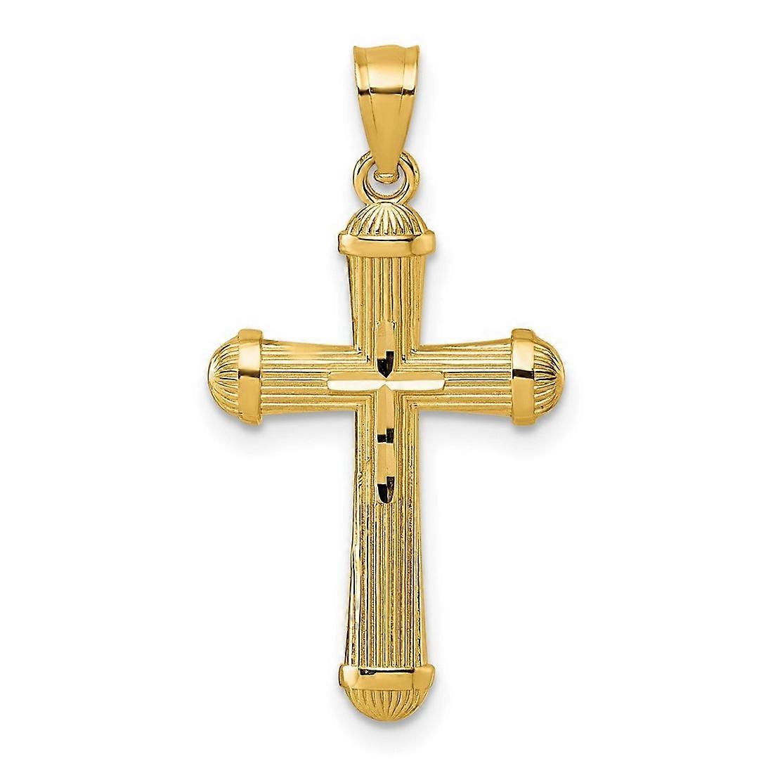 15.3mm 14k Solid Yellow Gold Polished and Sparkle Cut Grooved Religious Faith Cross Pendant Necklace-Pendant for Women