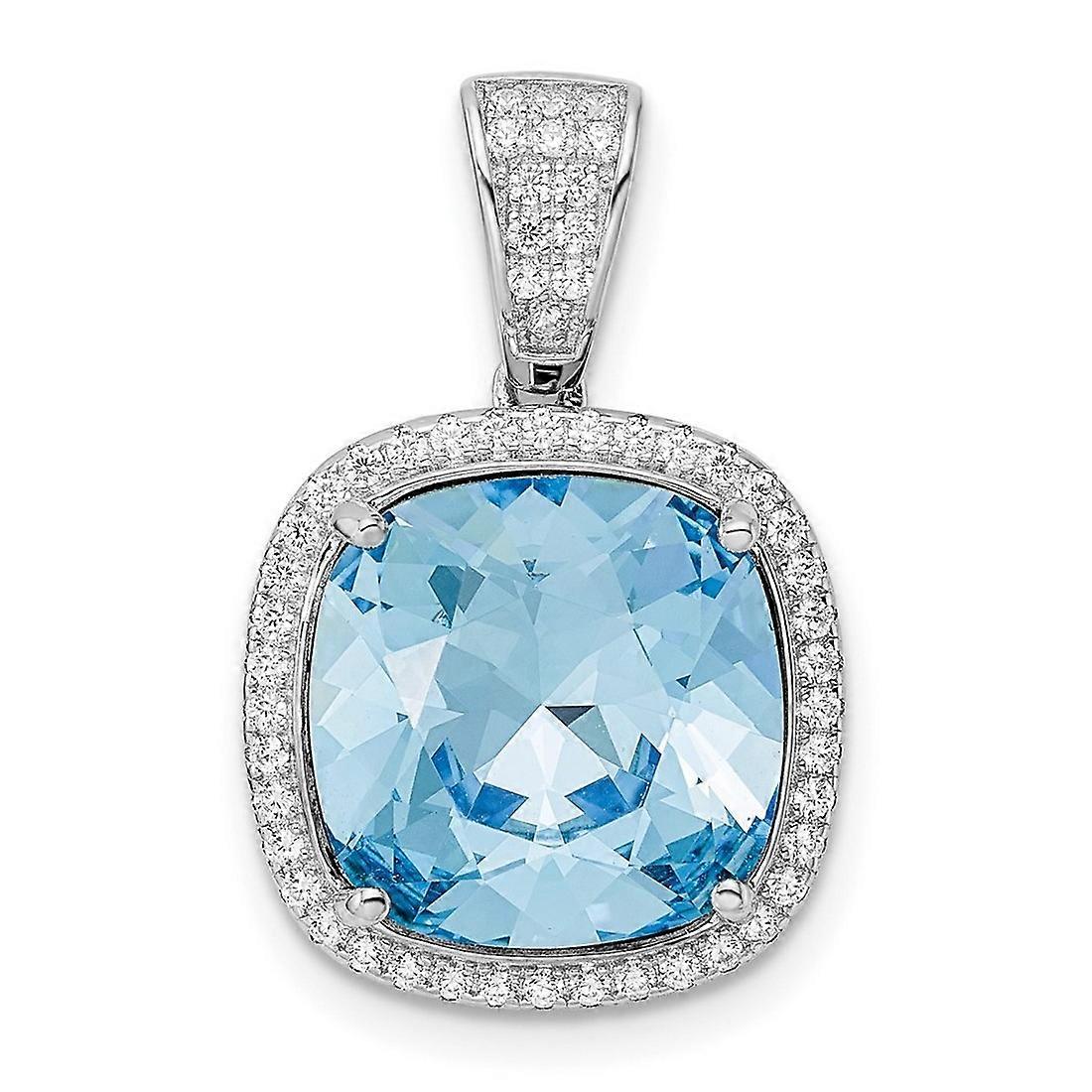 15.4mm 925 Sterling Silver Rhodium Plated Cubic Zirconia and Blue Crystal Pendant Necklace-Pendant for Women