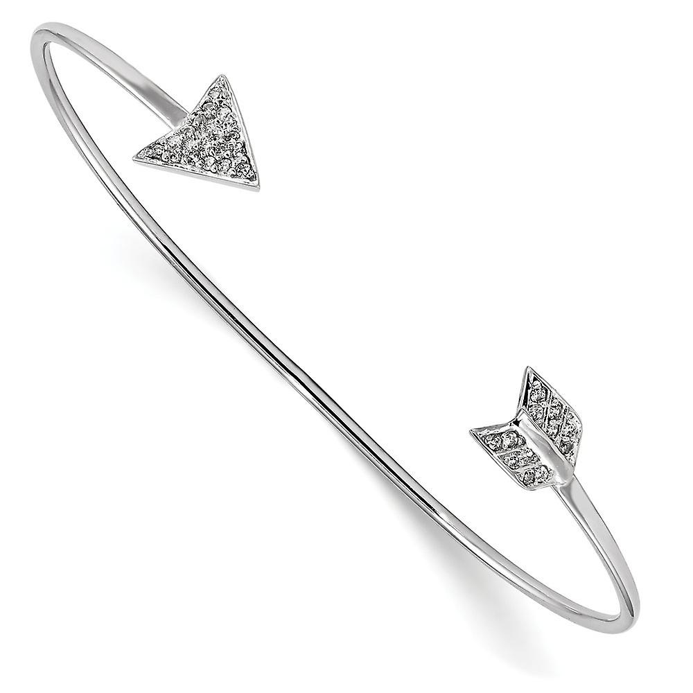1.55mm 925 Sterling Silver Rhodium Plated Cubic Zirconia Arrow Slip on Cuff Stackable Bangle Bracelet-Cuff-Bracelet for