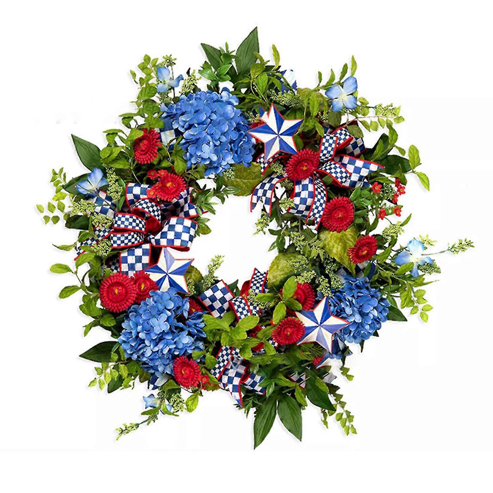15.7 Inch Artificial Tulip Wreath Flag Flowe Garlands American Independence Day Decoration